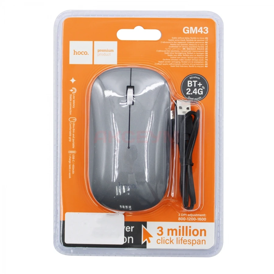 Мышь беспроводная Hoco GM43 Серый (перезаряжаемая/АКБ 450 mAh)